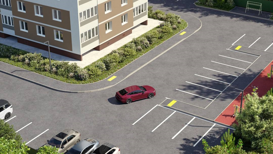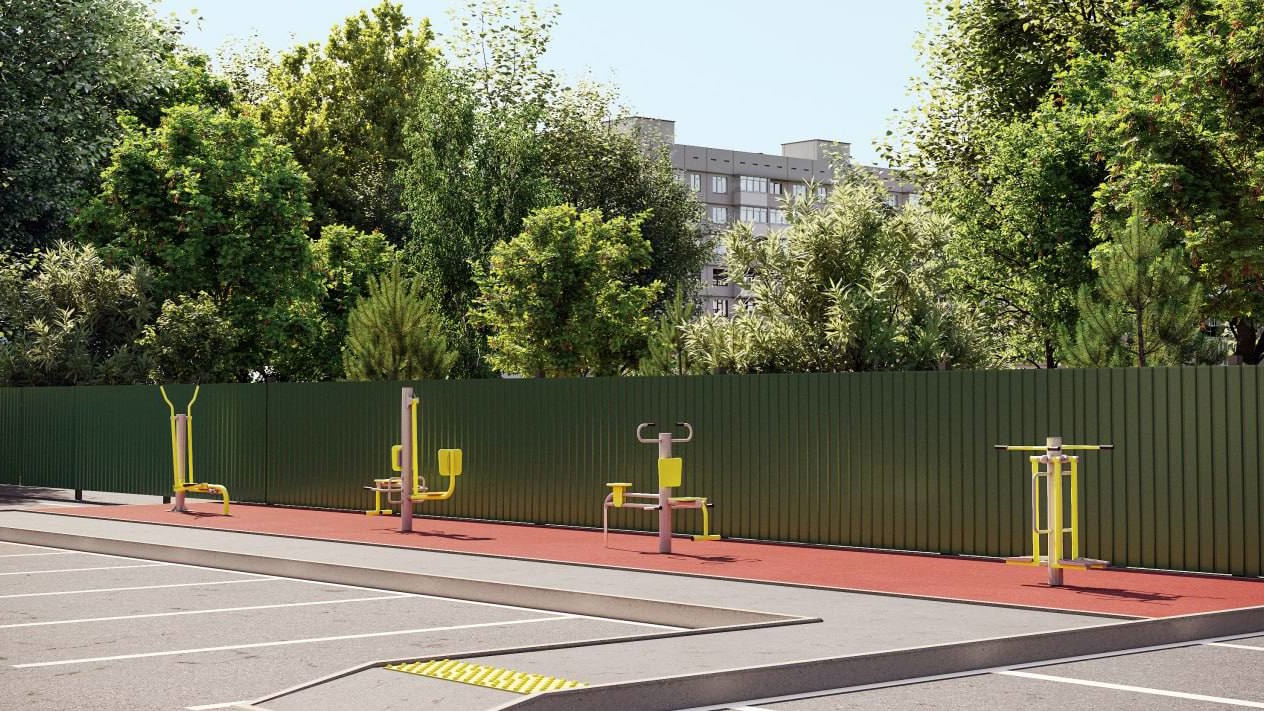 Размер закрытой территории вокруг дома в ЖК «Лидер» не очень большой и почти всё место будет занимать парковка автомобилей. Застройщик обещает сделать детскую игровую и спортивную площадку с уличными тренажёрами, но размер и наполнение этих площадок будет очень мал.