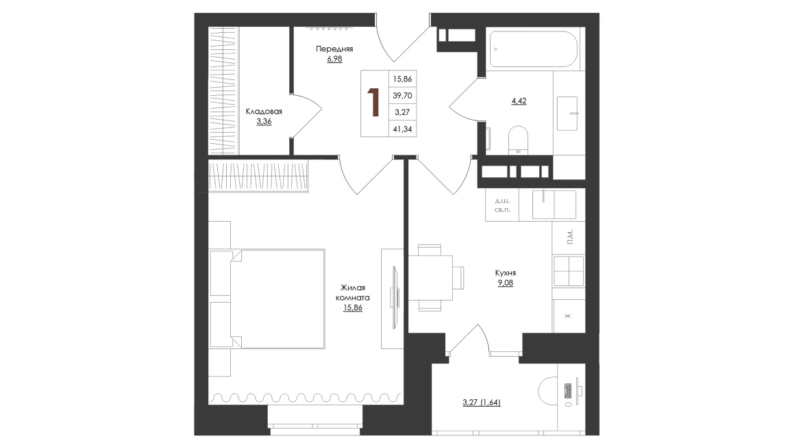 Площадь, м233,71-41,34 | Количество, шт.90 | Типы планировок, шт.6 |