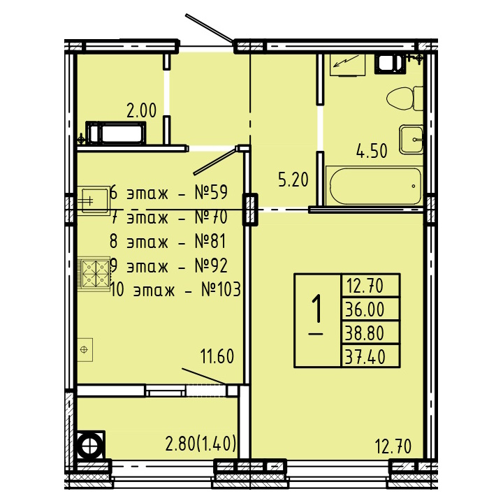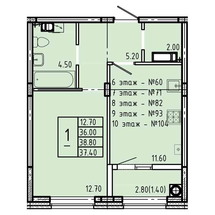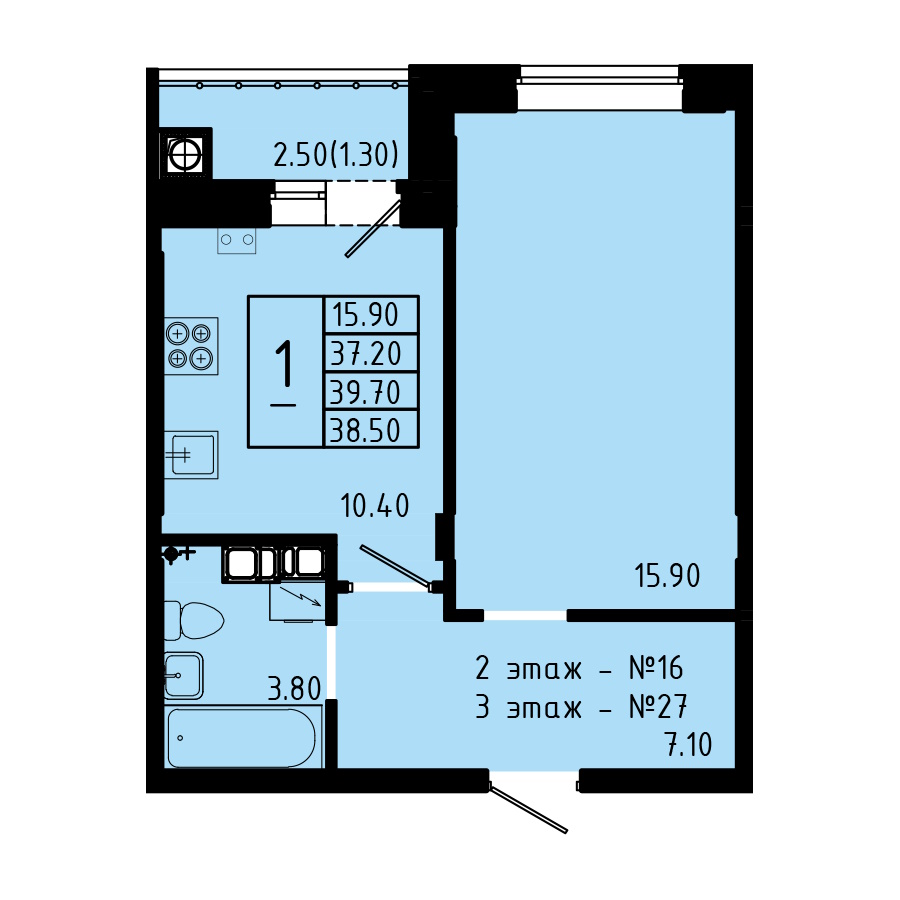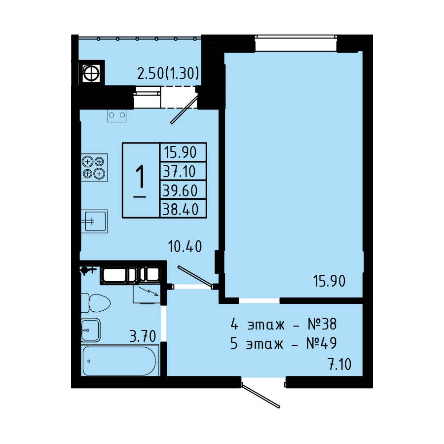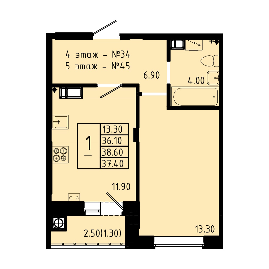 | Тип1 комн. | Цена, руб.от 3 800 000 ₽ до 4 710 000 ₽ |