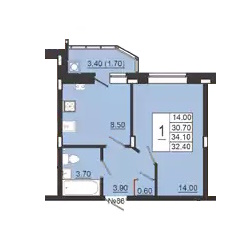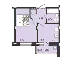 - 1 комнатные квартиры представлены 7 типами планировок площадью от 32,4 до 48,4 м2 – в самой маленькой квартире кухня 8,5 м2 и комната 14 м2 (с «непонятным» гардеробом 0,6 м2 в прихожей, вместо которого конечно же нужно поставить обычный шкаф), есть классические планировки, а так же одна квартира евро-формата с кухней-гостиной 16,2 м2 и комнатой 16 м2;
