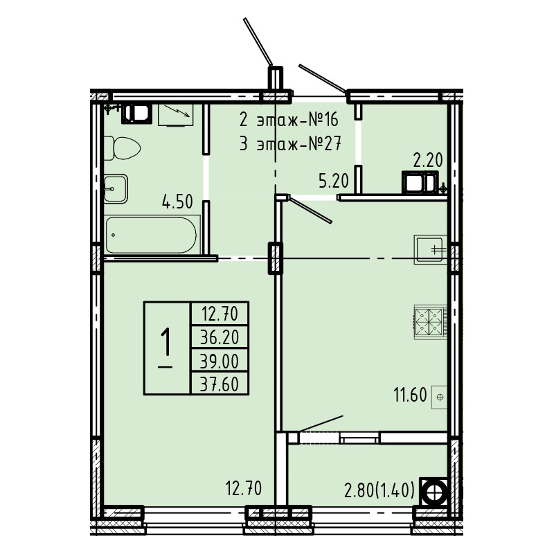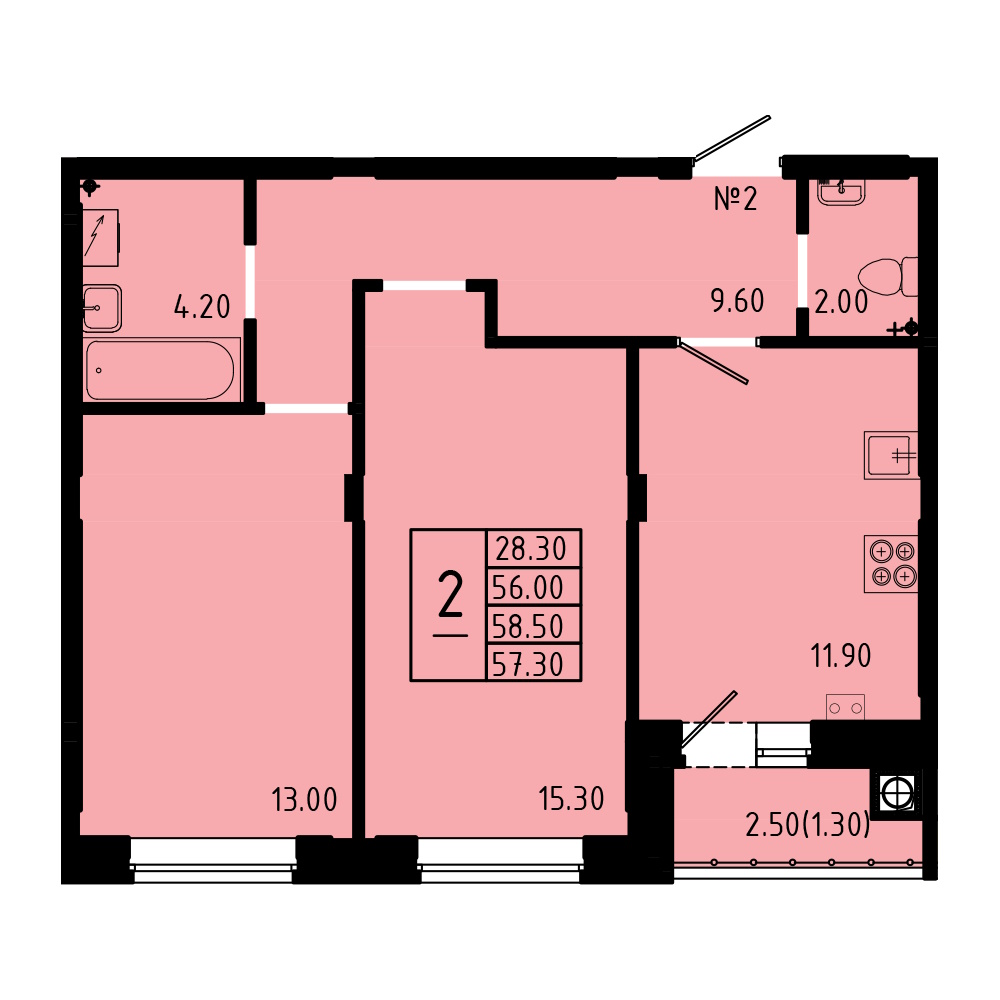 | Тип2 комн. | Цена, руб.от 5 781 200 ₽ до 6 052 800 ₽ |