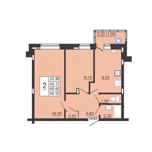 - 2-х комнатные квартиры имеют 3 типа планировок площадью от 46,1 до 59,3 м2 – квартира в 59,3 м2 классической планировки, а вот две другие – очень скромные с кухнями 8,6 и 9,5 м2 и имеющими одну из комнат 8,1 или 9,1 м2;